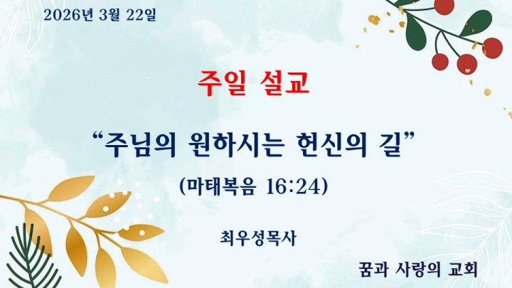| 번호 | 사진 | 제목 | 본문 | 설교자 | 날짜 | 보기 | |